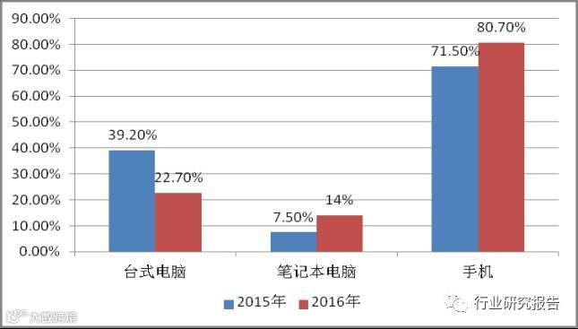 从新网民接入设备的情况看,台式电脑的使用比例已经下降到22.7%,而手机用户的使用比例上升到80.7%,笔记本电脑的使用比例也有很大的提升,三者之和大于一,主要因为有些用户使用多种设备引起的。从设备使用情况可以推测,移动设备的消费娱乐将成为时代的主流,尤其是以手机为基础的游戏开发将占游戏行业的最大份额。