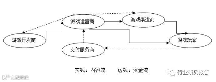 在游戏行业里,它的产业链上下游主要是游戏开发商、游戏运营商、游戏渠道商、支付服务商、游戏玩家(消费者)。
