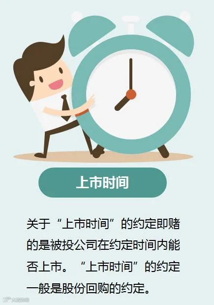 “上市时间”的约定不能算是对赌,对赌主要指的是估值。但这种约定与业绩承诺一样,最常出现在投资协议中。