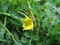 蕨麻多年生草本,根向下延长,在甘肃、青海、西藏,根下部膨大成纺锤形或椭圆形块根。茎匍匐,在节处生根,常着地长出新植株,外被伏生或半开展疏柔毛或脱落近无毛。基生叶为间断羽状复叶。开花时明显丛生,小叶6-11对,对生或互生,茎生叶很少或退化;叶柄被伏生或半开展疏柔毛,有时脱落近无毛;小叶无柄或顶生小叶有短柄,最上面一对小叶基部下延与叶轴汇合,基部小叶渐小呈附片状;基生叶托叶膜质,褐色,和叶柄连成鞘状,外被疏柔毛或脱落近无毛。茎生叶托叶革质,淡绿色,多深裂;小叶片通常椭圆形,长l-2.5cm,宽0.5-1cm,先端圆钝,基部楔形或阔楔形,边缘有多数尖锐锯齿或呈裂片状,上面绿色,被疏柔毛或脱落近无毛,下面密被银白色绢毛。单花腋生;花梗被疏柔毛;花直径1.5-2cm;萼片5,三角卵形,先端急尖或渐尖,副萼片5,椭圆形或椭圆披针形,全缘或有2-4齿,与萼片近等长或稍短;花瓣5,倒卵形,先端圆形,比萼片长1倍,黄色;花枝侧生。瘦果卵形,具洼点,背部有糟。花期5-7月。