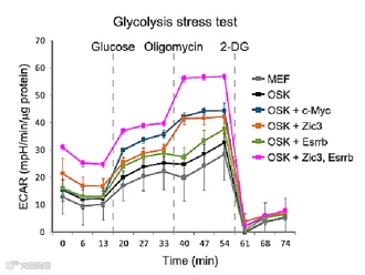 重编程:糖酵解的上调是有效重编程的要求。这些细胞能量代谢变化伴随着多能标记物的表达。利用 XF 技术容易同时测定线粒体呼吸(体细胞)和糖酵解多能状态诱导的生物能量代谢转变。