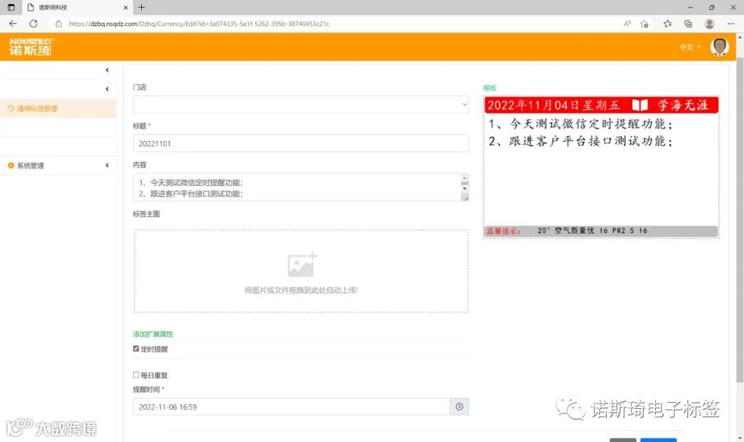 感谢广大用户对诺斯琦电子标签的大力支持,技术团队充分搜集用户对电子标签提出的改进建议,【诺斯琦电子标签系统】特作以下升级功能,所有用户可根据需要进行选择使用。