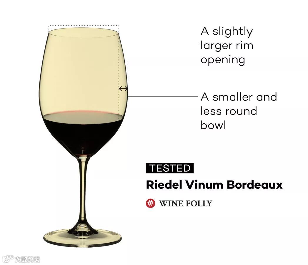 结论:这款酒杯对于饮用赤霞珠来说,似乎是一个很好的选择,只要你不是用于“闻”葡萄酒。因为这种酒杯的缺点是,它会让酒的香气变得更柔和,使得香气闻起来没有那么多,那么复杂。