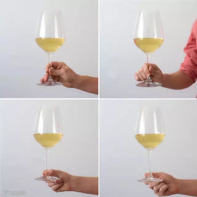 (坐着时推荐上两种持杯方式,站着时推荐下两种持杯方式)