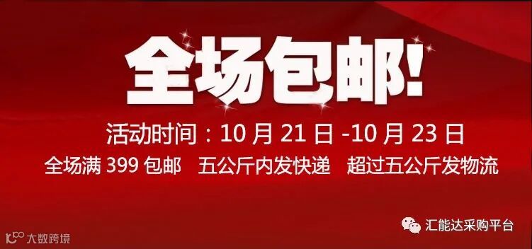 福利来了!!!汇能达采购平台十月《免运费活动》4小时后开启,免运费活动时间为10月21日-10月23日,仅限3天。