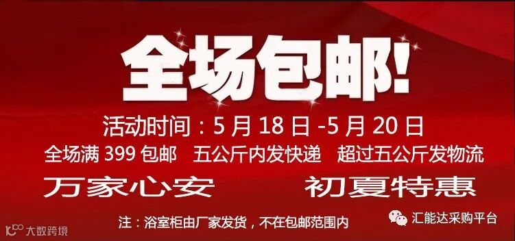 汇能达采购平台“万家心安、初夏特惠”——全场产品免运费活动将在4小时后开启,需要采购的伙伴请留意活动时间。