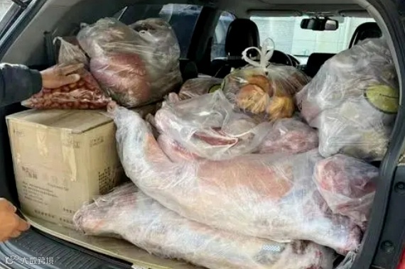 除了两只羊,后备箱里还有很多当地特产,恨不得把整个家都装进去让他带走,网友发愁,整只羊带回去,该怎么分割呢?