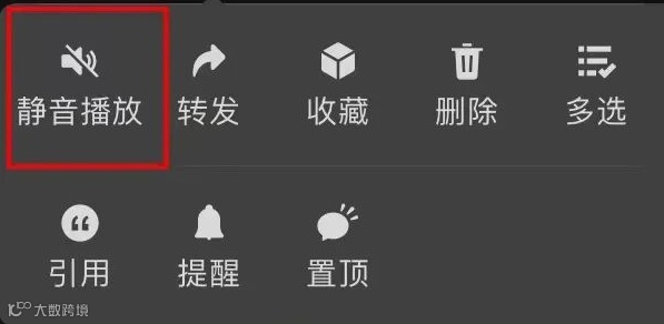 ▲ 操作方法:长按视频,选择【静音播放】即可,不管是好友发来的、群里的还是朋友圈看到的视频,都可以通过这个方法进行静音播放。