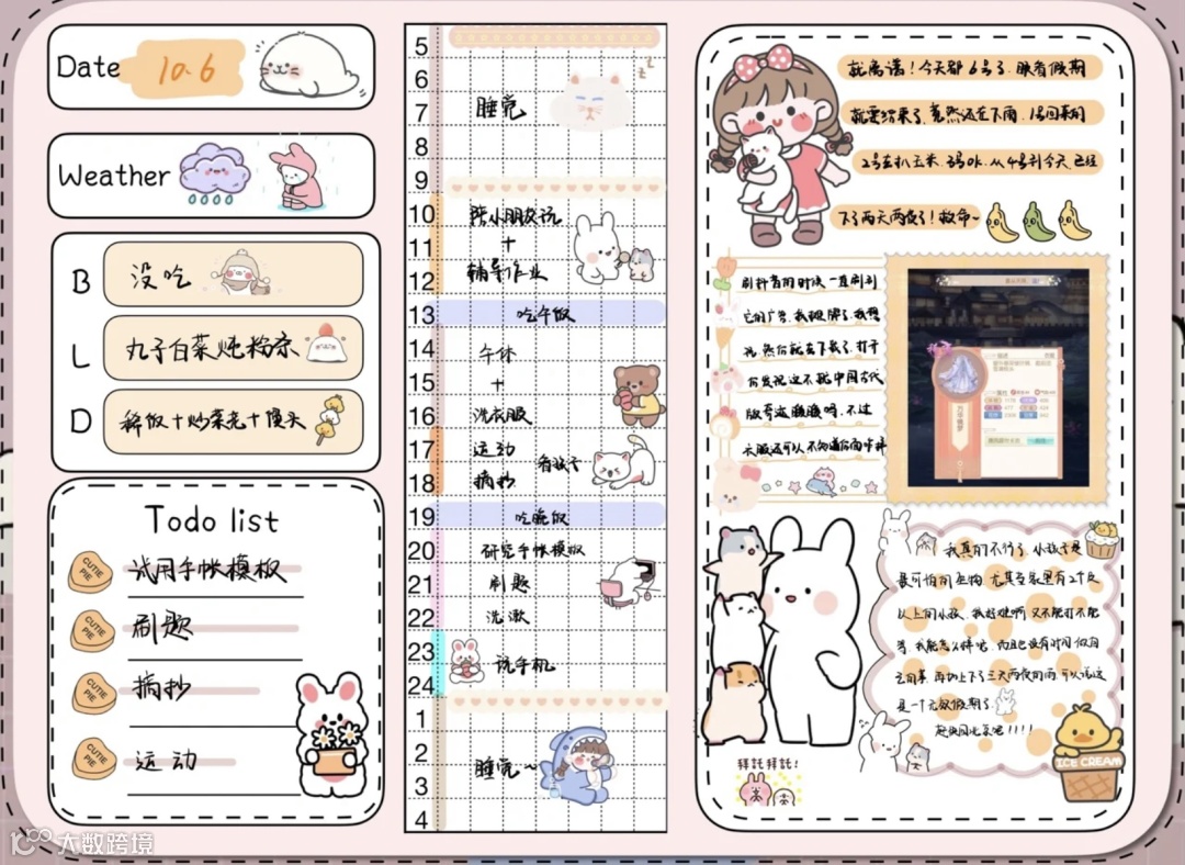 其次,要明确手账用途,管理时间、规划行程、日记记事还是经历记录。在明确手账用途之后,就可以进行大致的排版设想,把整个本子的规划都考虑进去。
