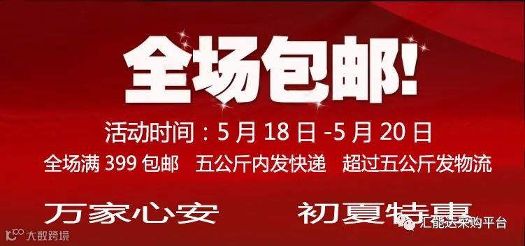 汇能达采购平台将开展万家心安、初夏特惠——全场产品免运费活动,需要采购的伙伴请留意活动时间。
