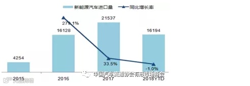 2015-2018年1-9月新能源汽车进口量走势
