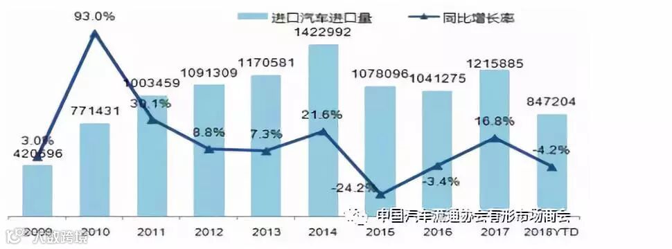 2018年进口车市场供需双降,平行进口汽车市场增速大幅回落: