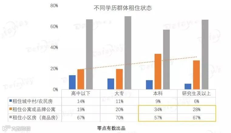 公司中层管理人员、事业单位工作人员或公务员、专业技术人员及自由职业者选择长租公寓的比例更高。