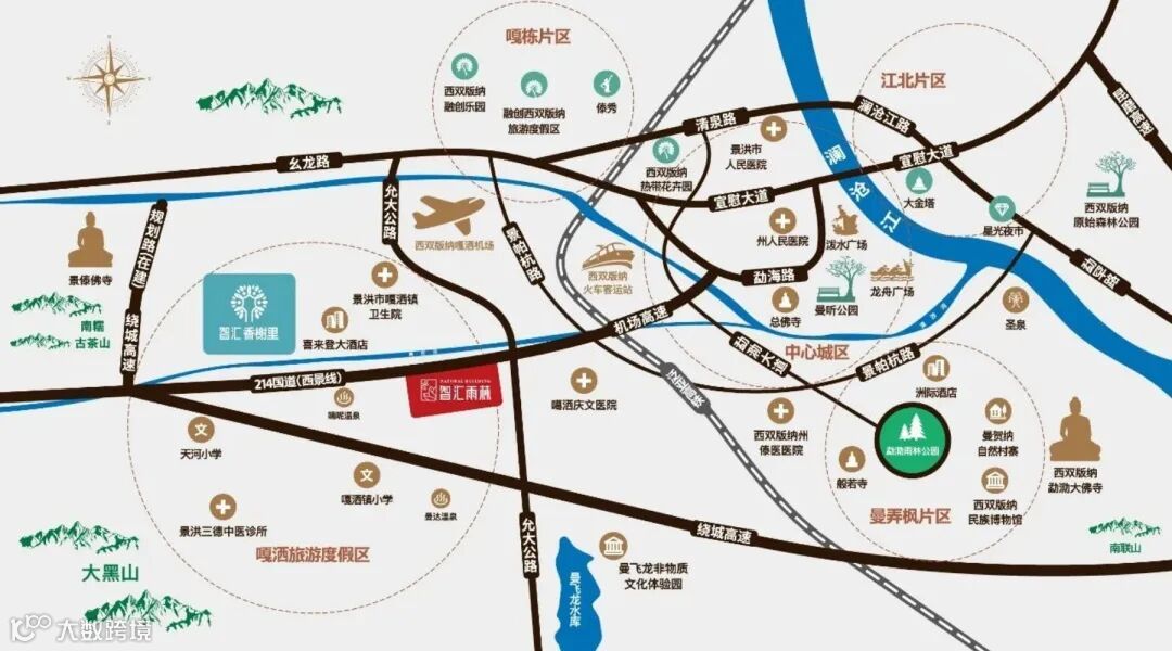 智汇雨林位于景洪市中心西南侧,北临214国道,距景洪市政府7.8公里,距嘎洒国际机场、高铁站约3公里,开车10分钟均可到达,交通非常便利。2公里范围内有多所当地知名教育医疗机构,周边配套设施十分完善。10公里范围内有民族风情园、雨林园、热带动物园、野象谷、湄公河印象、大佛寺、灯光夜市等知名景区,特别便于观光旅玩。
