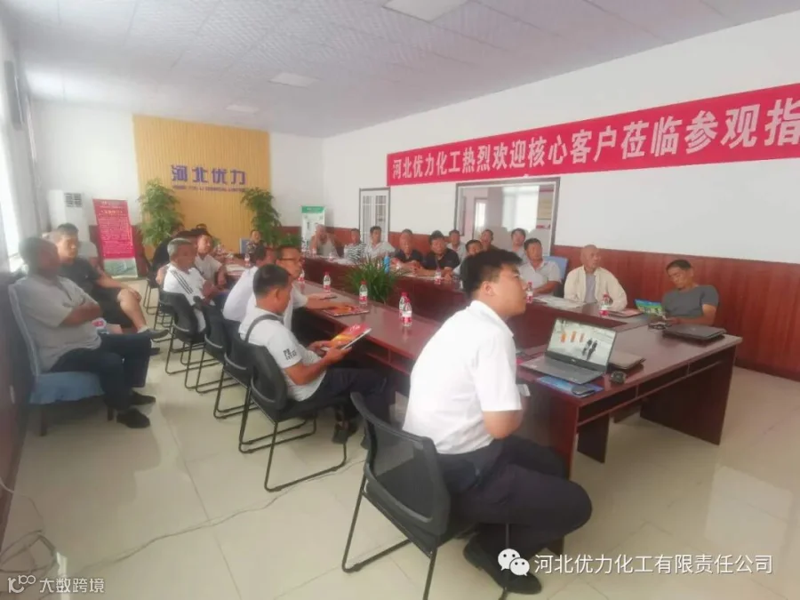 随后来到公司会议室参观学习,河北优力化工有限责任公司总经理李志凯到场致欢迎词,并对公司的下一步发展、如何规范市场、做最好的差异化产品等问题作出讲解。