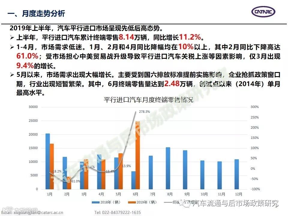 导读:2019年上半年,汽车平行进口市场呈现先低后高态势。1-4月,市场需求低迷。1月、2月和4月同比降幅均在10