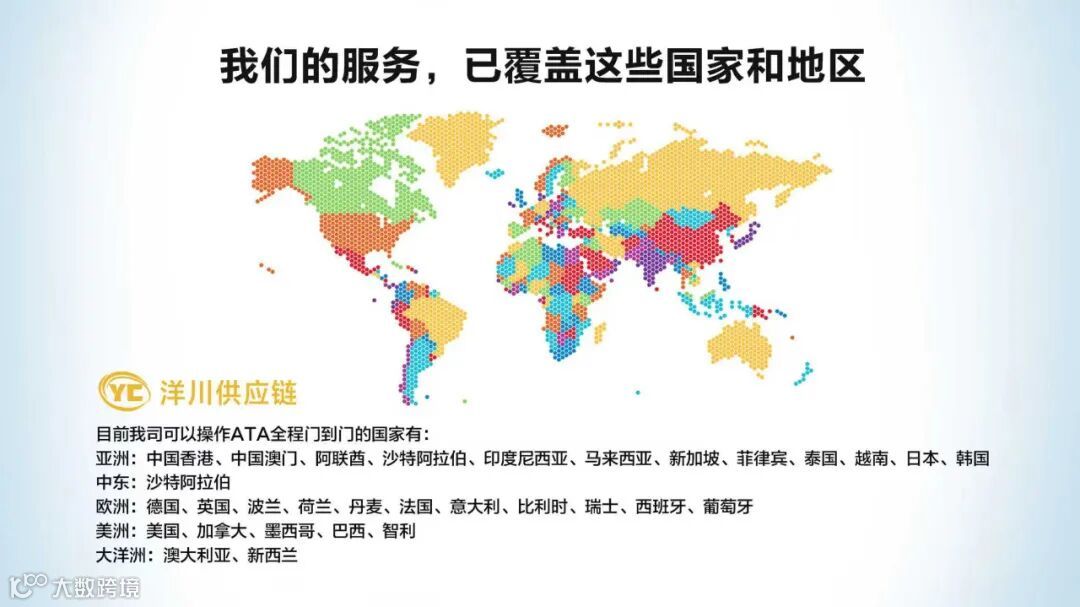 您的业务拓展到哪里,我们的服务就覆盖到哪里。目前,我们已成功为众多客户提供以下国家及地区的ATA全程门到门服务: