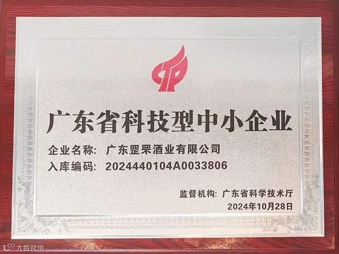 10月28日,广东罡罘酒业有限公司再次荣获广东省科技型中小企业。