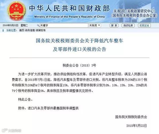 5月22日,就是昨天,财政部宣布进口关税下调的具体幅度,把汽车界朋友圈刷得清一色。虽然降关税从3月初的两会就开始提,4月的博鳌再次确认,但这次毕竟“落地为安”。