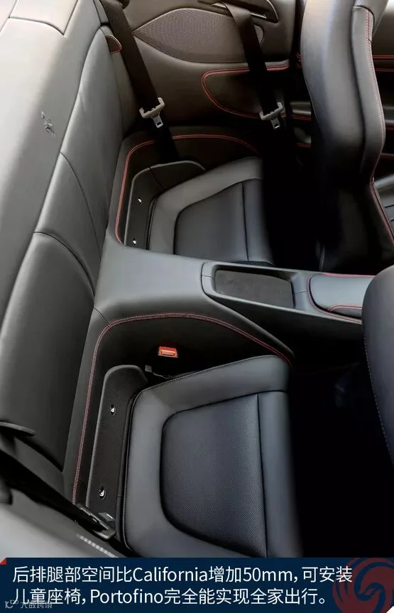 照顾到后排30%的上座率,Portofino在车身尺寸大体未变的前提下费尽心思给后排乘客挤出额外5cm伸腿空间。对于成年人依旧是摆设,但你可以带着孩子、开着敞篷的法拉利一起周末郊游了—多温馨!