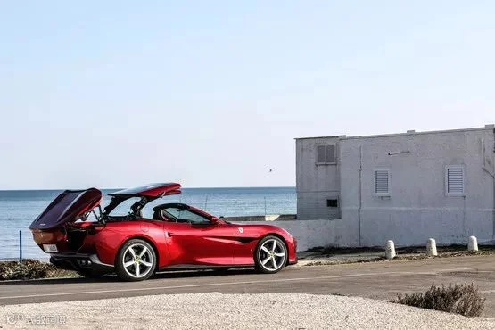 California的造型有点甜腻,优雅有余而法拉利味不足。而Portofino则有趋近完美的车身比例,合上车顶的时候俨然一台缩小版812 Superfast,溜背设计的灵感来自365GTB4/4 Daytona,侧身和车尾为疏导气流塑造的复杂型面和无处不在的通风孔让它比前任凶猛得多。