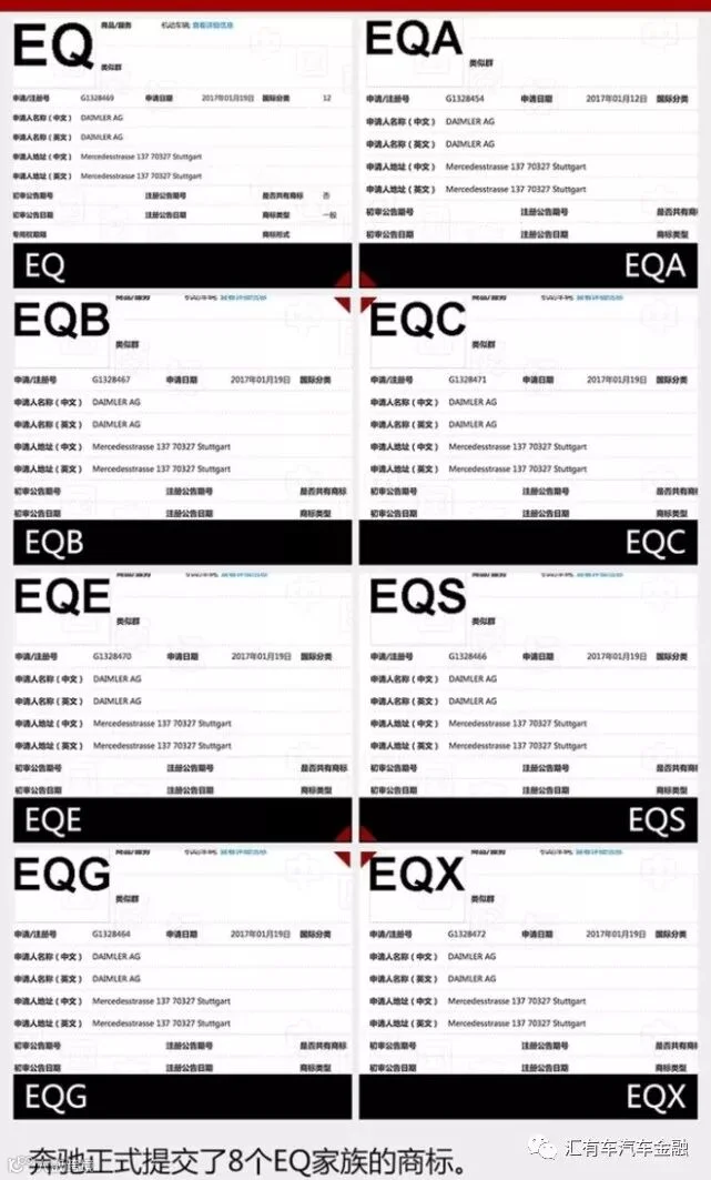 此外,梅赛德斯-奔驰已正式提交了EQ、EQA、EQB、EQC、EQE、EQS、EQG、EQX等多个新商标的注册申请。上述商标有望用于梅赛德斯-奔驰旗下的电动车家族,新车预计会涵盖紧凑型、中型、大型、SUV及皮卡等多种级别的产品。