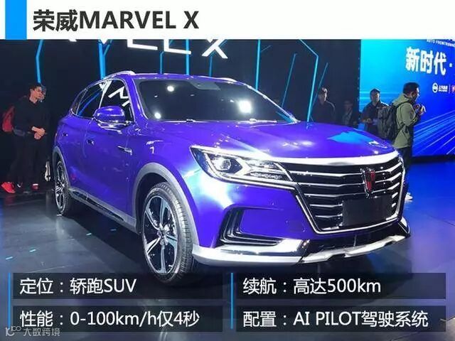 近几年来,上汽乘用车旗下的荣威品牌在SUV市场如鱼得水,打造出RX5、RX3等爆款车型。本届北京车展上,荣威首款纯电动SUV MARVEL X将与消费者见面。外观采用荣威最新家族设计风格,轿跑化的造型无疑会让妹子看了就尖叫。值得一提的是,MARVEL X还配备了14 英寸超大曲面触控屏、斑马系统3.0 版、AR-HUD抬头显示技术、无线充电等“黑科技”。消费者最关心的性能方面,新车可实现550km的续航,领先市面上绝大多数电动车。