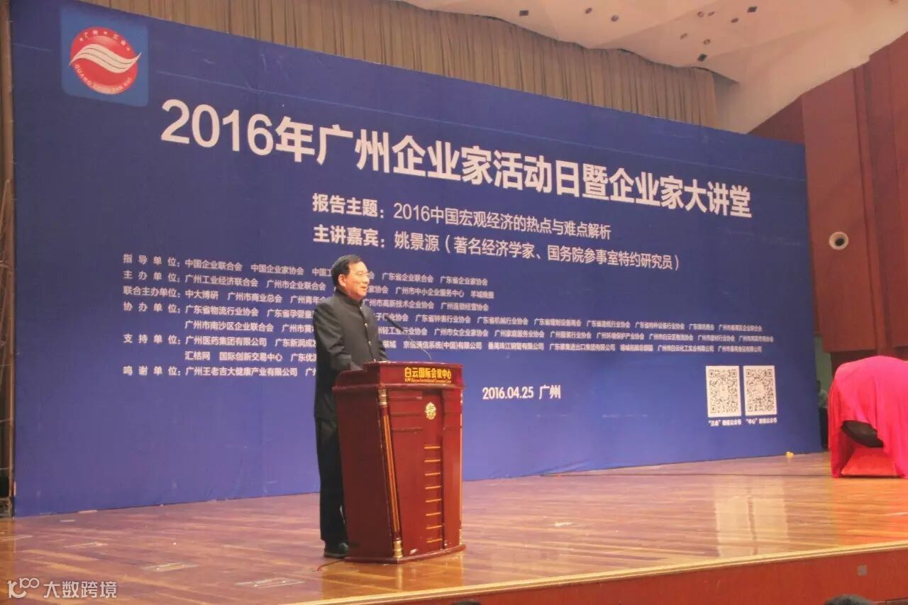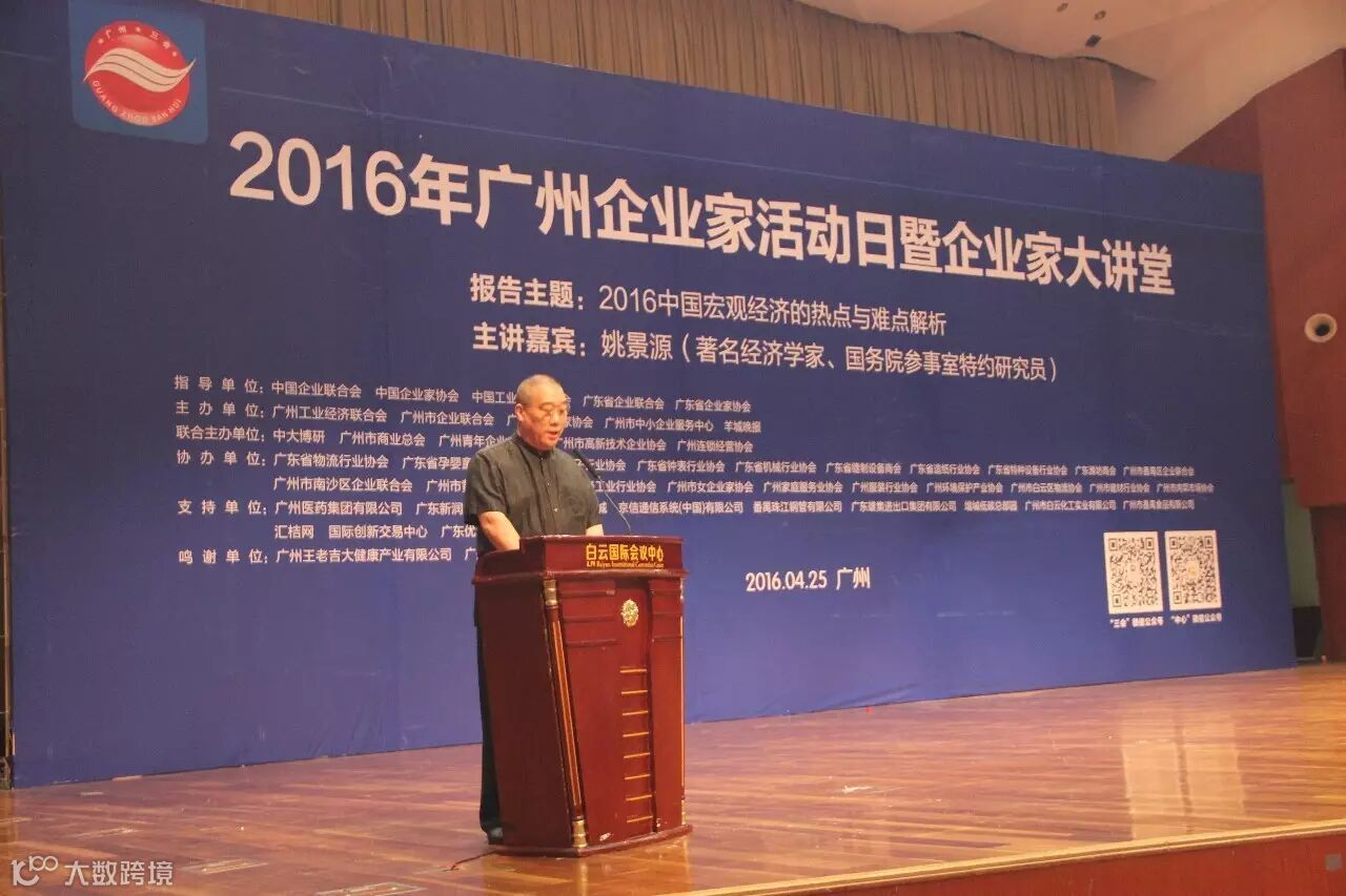 广东罡罘酒业有限公司参加2016年广州企业家活动日暨企业家大讲堂活动。活动于4月25日在广州白云国际会议中心隆重举办,邀请著名经济学家、国务院参事室特约研究员姚景源先生发表题为“2016中国宏观经济的热点和难点解析”。广州“三会”王东胜会长表示,广州经济要持续健康地发展,企业自主创新、发展循环经济、积极承担社会责任、创建和谐企业,更好地营造尊重企业家、理解企业家的氛围。
