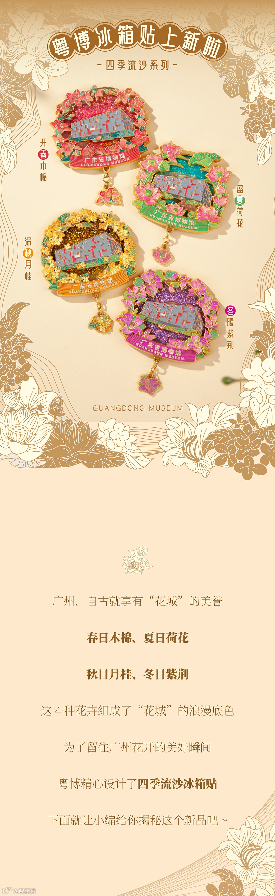 把岭南四季花卉的浪漫带回家,粤博上新流沙冰箱贴啦!