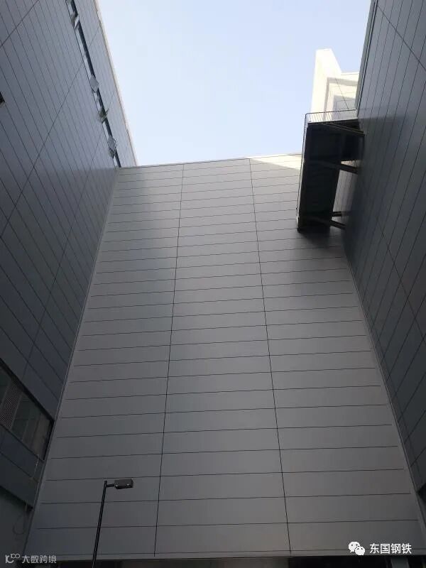 项目的外板设计了金属质感PVDF氟碳涂料,而分批次生产金属漆产品会存在不同批次间色差和板面平整度差异化的难题。东国制钢依据强大的技术储备、顶尖的行业人才,从原辅材料到生产端,从第一批到最后一批生产,层层把控,利用独有技术,完美解决了此难题,获得客户高度认可。