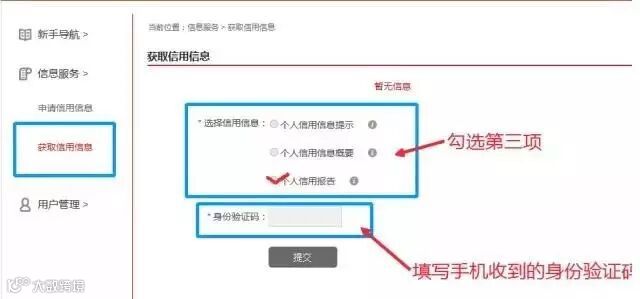 申请流程到此就完成了,注意预留的手机号。手机收到“中国人民银行征信中心”发来的验证码之后再进行下一步操作(如图所示)。