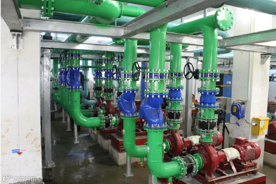机房空间小层高低(面积430㎡ ,层高4.4米);设备较多,共3台制冷机组(2台400RT,1台200RT),1台板式换热器,9台冷冻泵,5台冷却泵,集/分水器各1台。