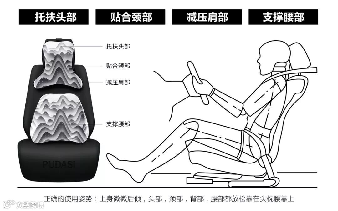 普达斯PUDASI邀请欧洲著名产品设计师和全球知名插画大师加入品牌主创团队,分别负责头枕腰靠产品的造型设计和视觉设计。