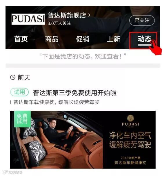 进入店铺,点击“动态”