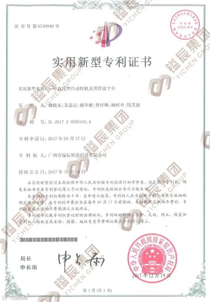 22、一种直线型自动焊机及其焊接平台 ZL 2017 2 0550103.4