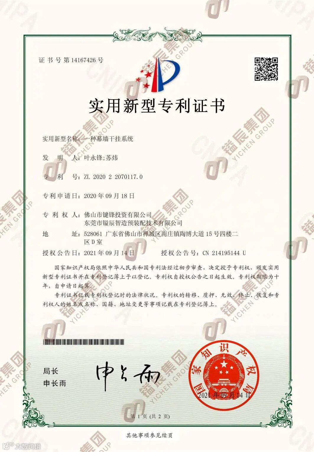 13、一种幕墙干挂系统 ZL 2020 2 2070117.0