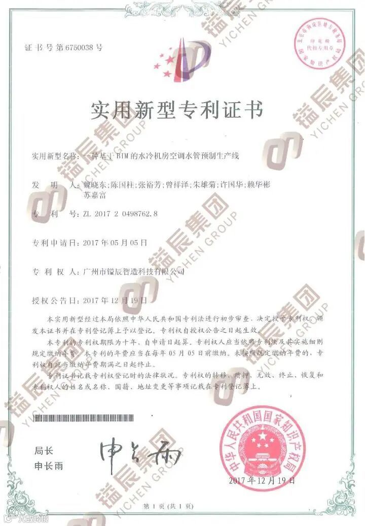 24、一种基于BIM的水冷机房空调水管预制生产线 ZL 2017 2 0498762.8