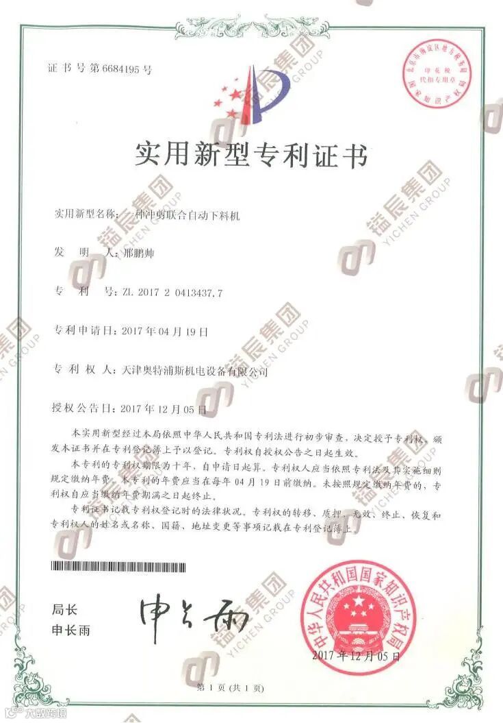 51、一种冲剪联合自动下料机 ZL 2017 2 0413437.7
