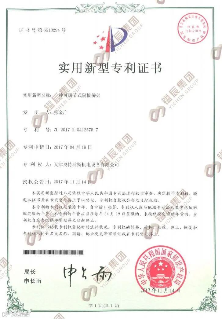 50、一种可调节式隔板桥架 ZL 2017 2 0412578.7