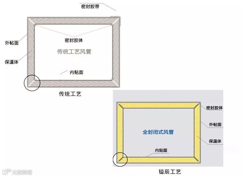 全封闭结构不用打密封胶避免了玻璃纤维的任何漏电,防止纤维吹落。产品在整体内贴面合管折角时,风管四角均已完全闭合,从而可省略工人现场开槽、密封等施工环节。还具有产品质量稳定、施工现场无下脚料、缩短施工周期等诸多优势。