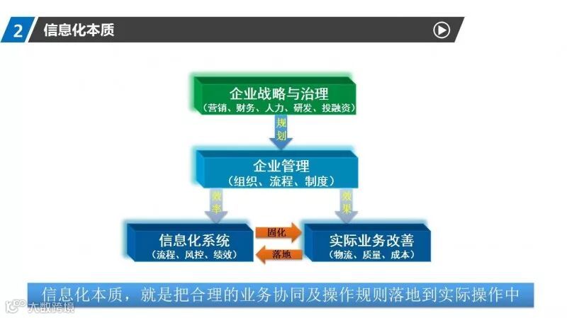接下来凯联总经理董海荣以幽默轻松的方式给大家介绍了信息化,指出了企业整体运营中提高企业运营所需各种要素之间的协同效率是企业核心关注点,信息化的本质是把合理的业务协同及操作规则落地到实际操作中。也指出了变革管理中“人”的因素至关重要,沟通、培训、考核是改变人们心理的有效措施。