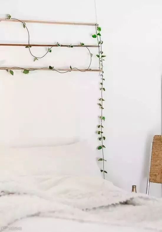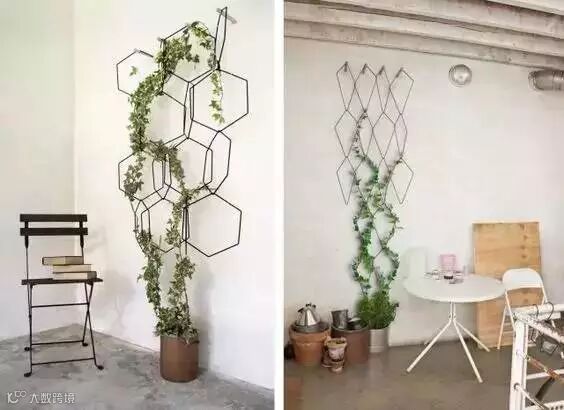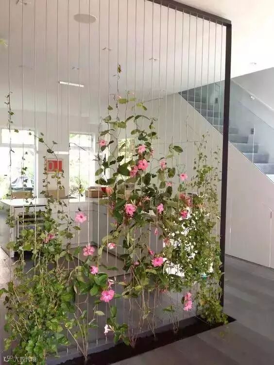 1、隔断装饰:将植物用毛线缠绕在隔断上,形成自然的植物屏风。