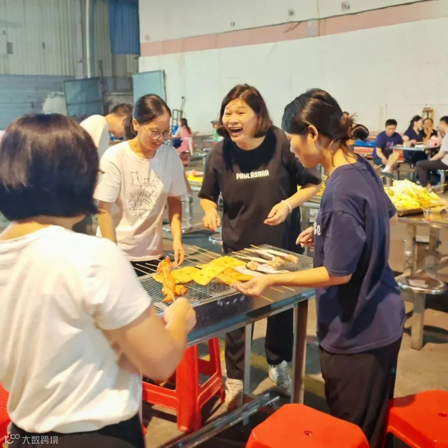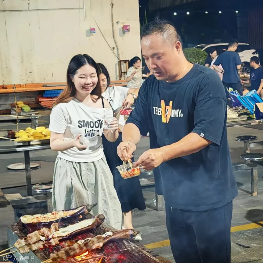 炊烟袅袅,香气四溢。平日里工作中的伙伴,此刻化身为“烧烤大师”。大家围聚在烤炉旁,协作默契,笑语盈盈。一串串美食,传递着同事间的深厚情谊。
