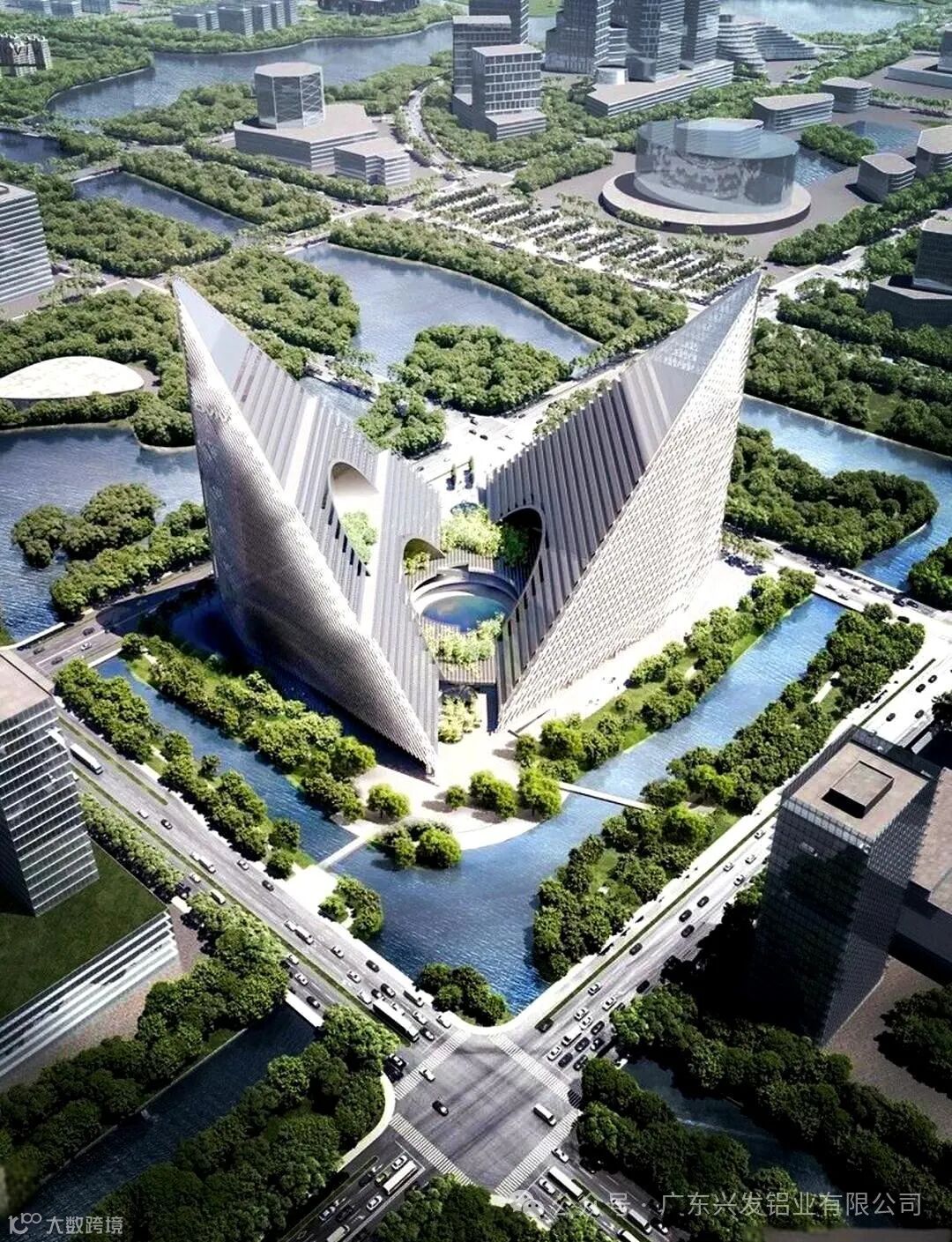 图:全球最大“V”字幕墙vivo全球AI研发中心选用兴发铝业产品