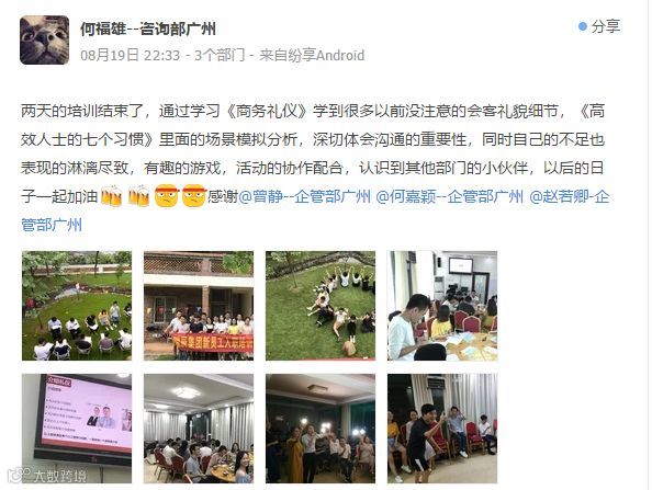 两天的培训到此就告一个段落了,大家从一开始的拘谨,到现在的融合、友好、共进。之前你问我我们是谁我可能不知道……但是,从今天起我可以很骄傲的告诉你,我们是镒辰人, We are family ~~