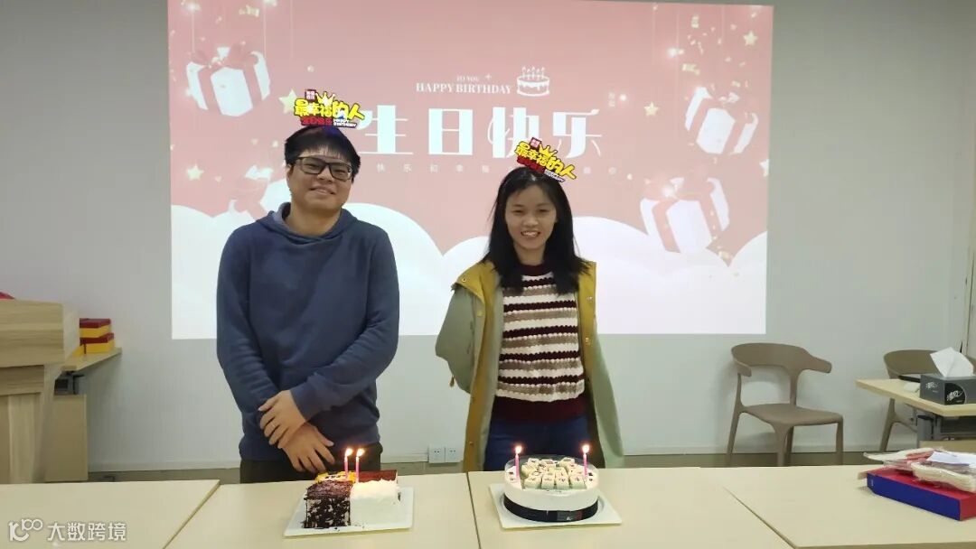 游戏结束后,我们请出游戏过程中表现优异的两位小伙伴,为他们送上”特权“,工作人员为全体寿星送上了美好的生日祝福,大家欢快的唱起“Happy birthday to you......”