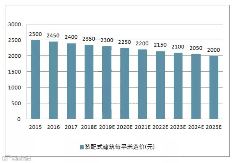 2015-2025年中国装配式建筑每平米造价测算(元)