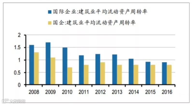 3)近年来各地政府通过财政补贴、贷款优惠等方法,鼓励推广装配式建筑,丰厚的政府补贴,使得相关建筑企业及房地产企业受益,将缓冲装配式建筑成本端劣势 建筑业国企平均流动资产周转率低于国际企业。