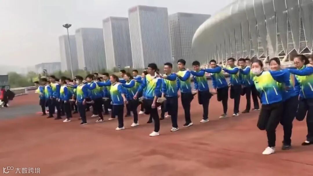 左腿往后面勾起,就这样形成一个小队伍