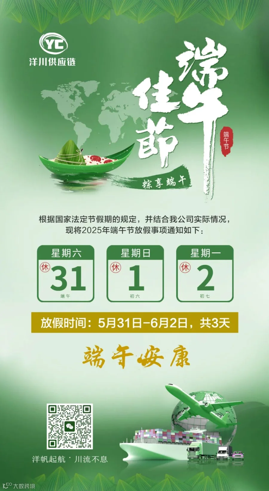 根据国家规定及公司安排,2025年端午节放假时间为: